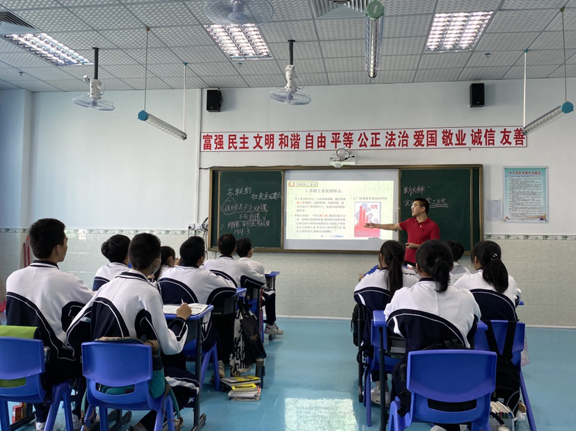 孟凡靠老师和九(2)班同学们一起学习了《苏联的社会主义建设》这一课。在孟老师精彩的讲解下,同学们个个听得津津有味。课堂上,孟老师采用史料实证的方法,从战时共产主义政策、新经济政策和苏联的工业化三方面来讲述本课,引导学生思考。孟老师情绪高昂、声情并茂,学生踊跃回答问题、参与热情高涨,学习氛围浓厚。孟老师在这堂课的教学中充分贯彻了时空观念、史料实证、历史价值观等历史核心素养。