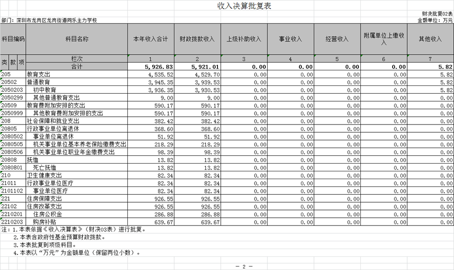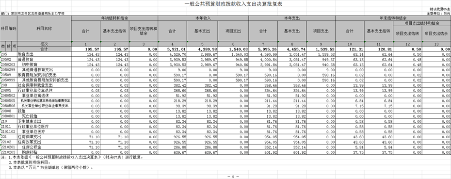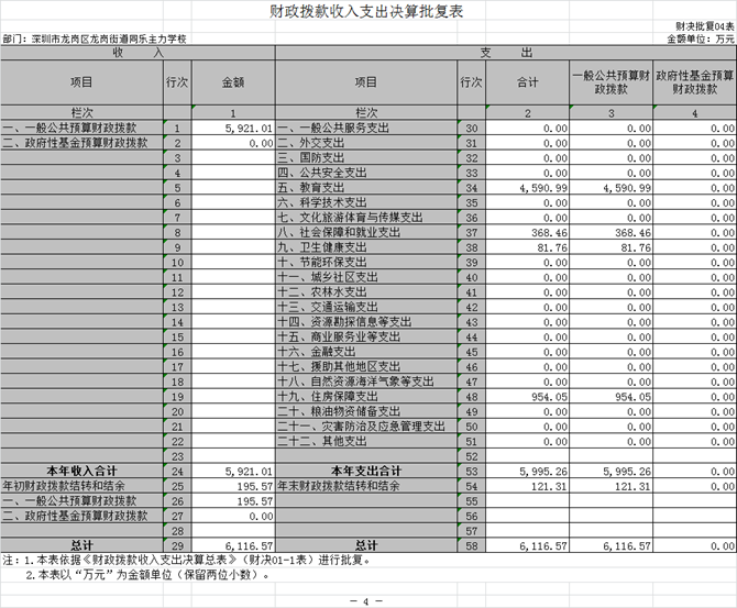 同乐主力学校收入支出决算批复表