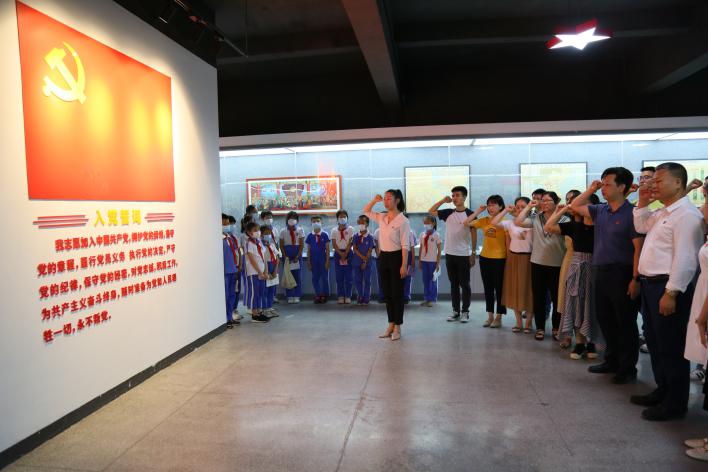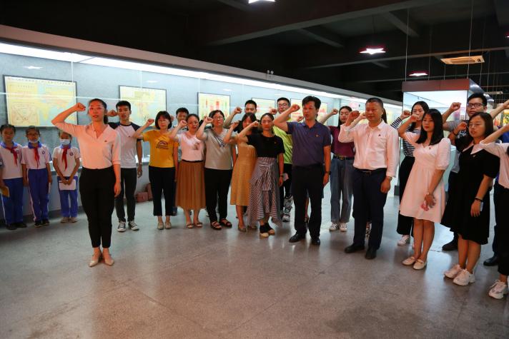随后,全体党员在纪念馆党旗处重温入党誓词,共青团员、少先队员在旁观看。庄严的宣誓过程让团队学生倍感身份的荣誉与肩上的责任。