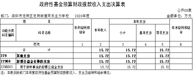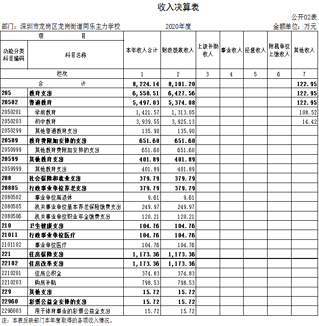 二、深圳市龙岗区龙岗街道同乐主力学校2020年度部门决算表