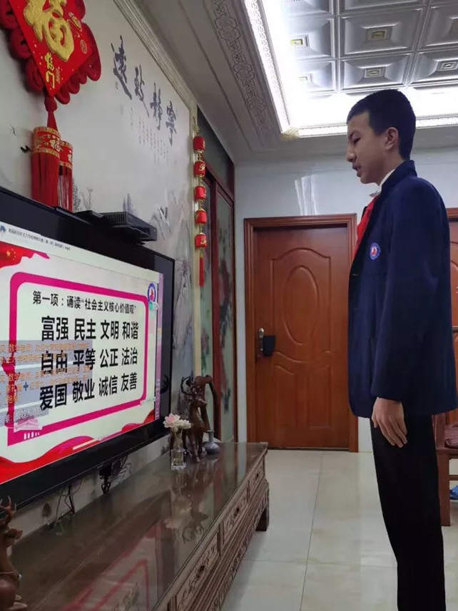 这场特别的升旗仪式,虽从学校的操场移到了家里的客厅,但我们的爱国热情从未减退!我们盼春来疫去,待归零之日,山河无恙,我们在校园相聚!