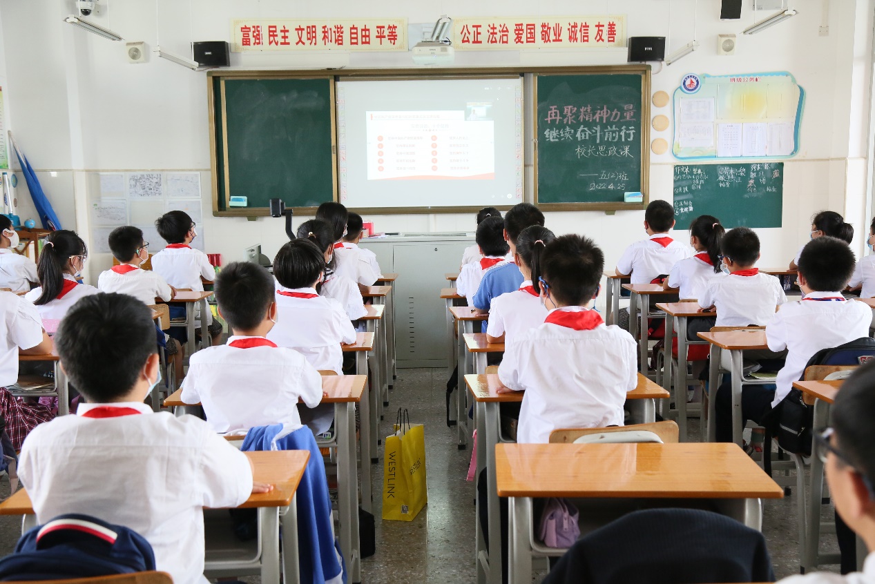 最后,郭校长给大家强调了十九届六中全会提出的三方面的要求。一是要牢记中国共产党是什么、要干什么这个根本问题;二是要深化思想引领;三是永远保持同人民群众血肉联系。同时他还结合同乐主力学校的校史呼吁同学们珍惜来之不易的幸福生活!