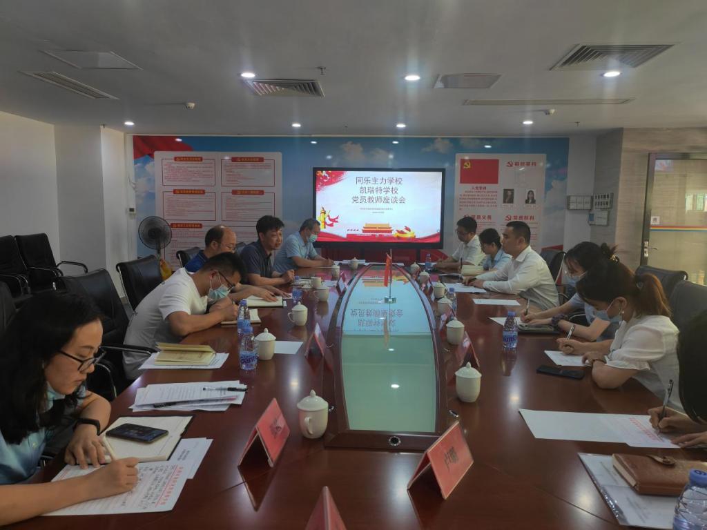 随后,两校党支部进行了党员教师座谈会和党务干部培训。座谈会上,李建新副书记指出,近两年来凯瑞特党支部发展迅速,广大党员要在站好政治立场的前提下,大力支持校长行使职责,推动党组织领导的校长负责制,更好地为学校中心工作服务。李副书记还询问了每个党员教师的基本情况,关心党员们在工作中遇到的困惑。针对党员教师提出的问题,李副书记指出,党员教师要加强理论学习,要加强思政与学科教学的融合,并介绍了同乐主力学校党支部的具体做法,为解决相关问题提供了范例。党务干部培训会上,李副书记就如何加强理论学习、进行党建宣传等等问题,一一进行了讲解,为两校党建帮扶的深化合作提供了具体路径。